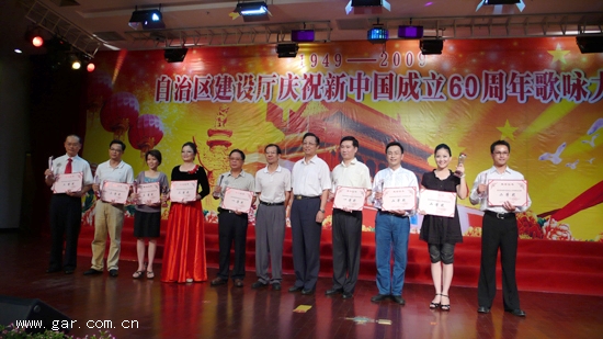 2009年9月23日,我院參加廣西建設廳舉辦的“慶國慶60周年歌詠比賽”。本次比賽共有廳屬9支隊伍參加,我院榮獲本次比賽一等獎。本次比賽充分體現了我院職工喜迎國慶60周年的豪邁心情,并加深了對建國60年,特別是改革開放30年來祖國所取得巨大成就的深刻認識。院領導及廣大職工對本次歌詠非常重視,為了贏得此次比賽,我院職工利用業務時間聘請了專業老師進行指導。此次能榮獲一等獎是我院職工努力的結果,也是全院的榮耀。