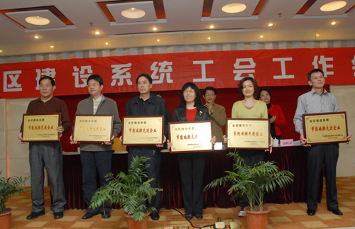 獲“廣西建設(shè)系統(tǒng)節(jié)能減排先進(jìn)企業(yè)”榮譽(yù)稱號(hào)的部分企業(yè)代表領(lǐng)獎(jiǎng),我院工會(huì)主席 楊萍 上臺(tái)領(lǐng)獎(jiǎng)