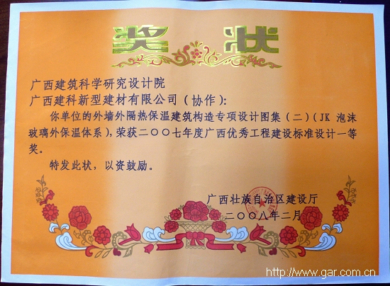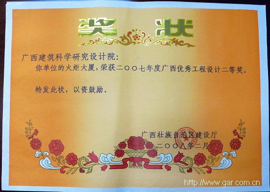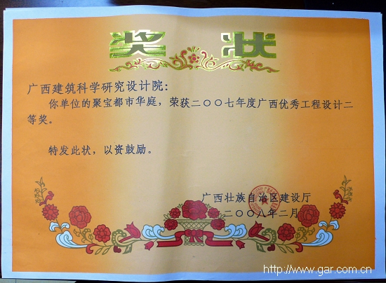 2008年我院榮獲多項區建設廳頒發的獎項