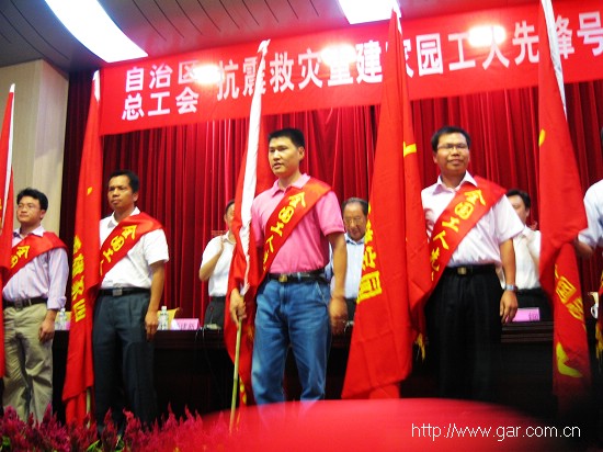 2008年6月19日 自治區總工會召開抗震救災重建家園“工人先鋒號”表彰大會,對在這次抗震救災斗爭中積極參加搶險救災、醫療救助、衛生防疫,出色完成急需物資生產和運輸任務的先進集體授予抗震救災重建家園全國“工人先鋒號”旗幟。我院也派出代表參加了表彰大會。