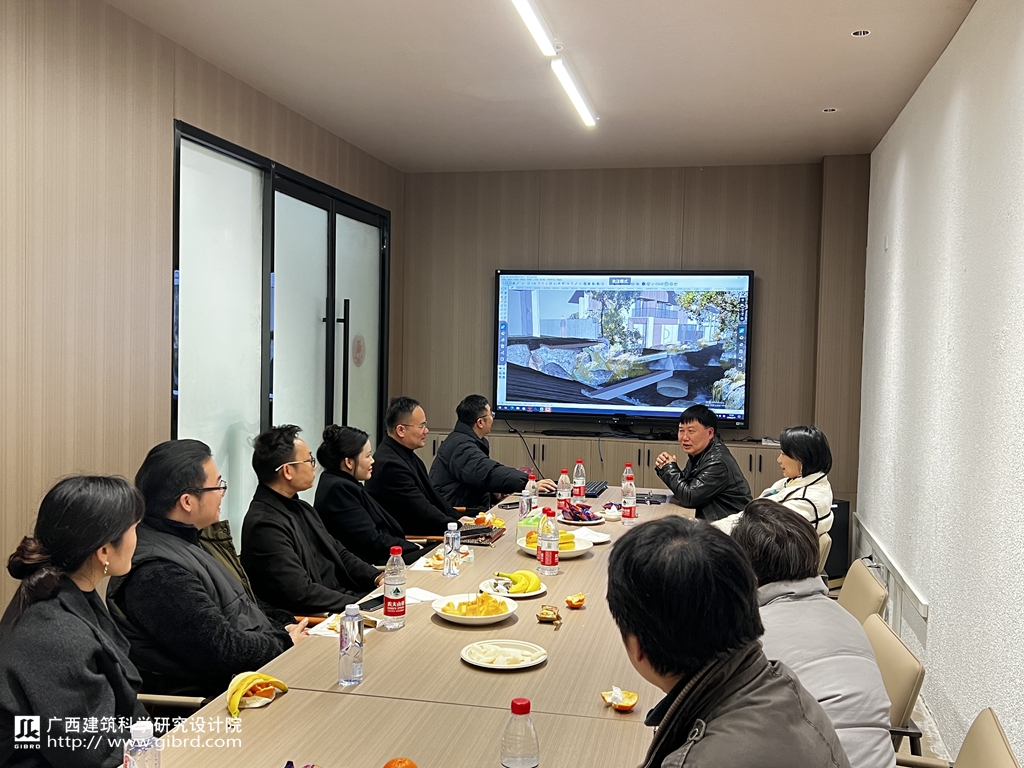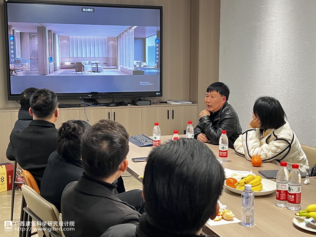 韋靜云向彭業(yè)卿一行介紹并展示了我院近年來完成的桂林漓江大瀑布飯店有限責任公司部分區(qū)域空間品質(zhì)提升改造項目設計、賀州溫泉森林度假酒店適老化項目改造設計、工行廣西分行客戶營銷中心改造裝修項目、北京廣西大廈室內(nèi)外裝飾設計等室內(nèi)設計項目方案及效果圖,分享了高檔星級酒店裝飾設計的心得體會,獨特的見解和經(jīng)驗。彭業(yè)卿介紹了來賓分會的基本情況,以及在搭建交流平臺推動環(huán)境藝術設計行業(yè)的繁榮發(fā)展所做出的貢獻。