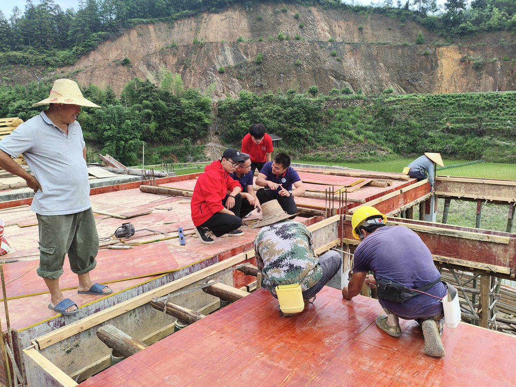 技術幫扶團隊在給吳廣平家的房屋作施工指導