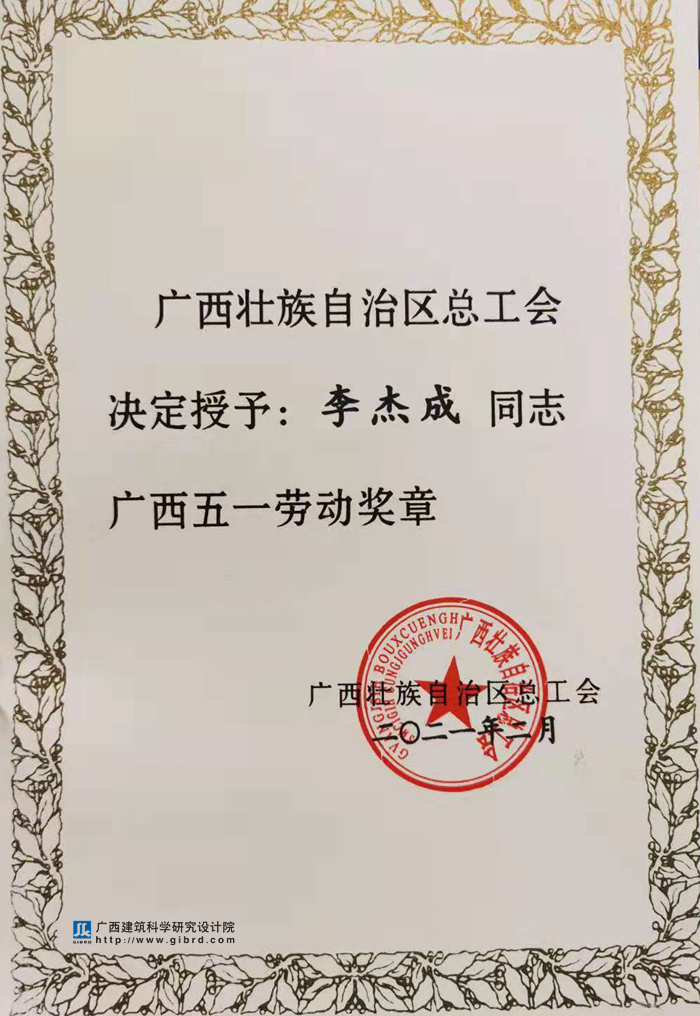近日,我院副院長李杰成榮獲廣西五一勞動獎章,設計一所的扶綏縣棚戶區(qū)改造規(guī)劃建筑設計項目榮獲2020年全區(qū)棚戶區(qū)改造工程建設示范性勞動和技能競賽優(yōu)勝班組,檢測一所工會小組榮獲全區(qū)住房城鄉(xiāng)建設系統(tǒng)先進職工小家。