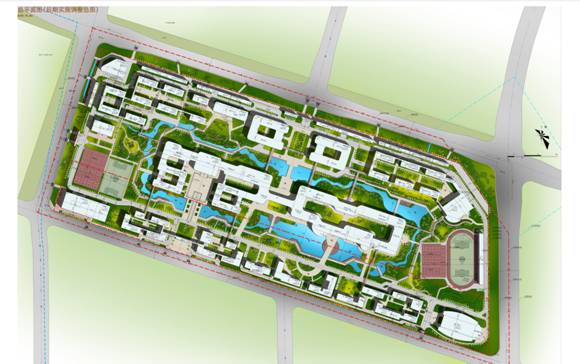 一期宿舍樓位于校區(qū)北側(cè)生活服務(wù)區(qū),規(guī)劃建設(shè)10棟宿舍樓,建成后能容納11000人學(xué)生入住。建筑層數(shù)為11層、14層的組合,總建筑面積119297.28平方米,總投資約3.789億元。