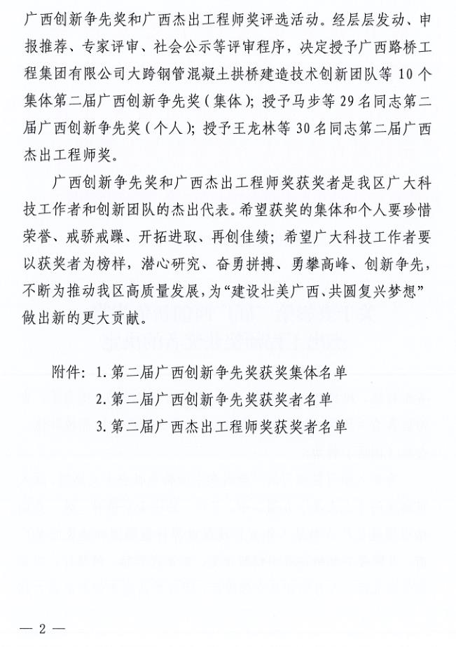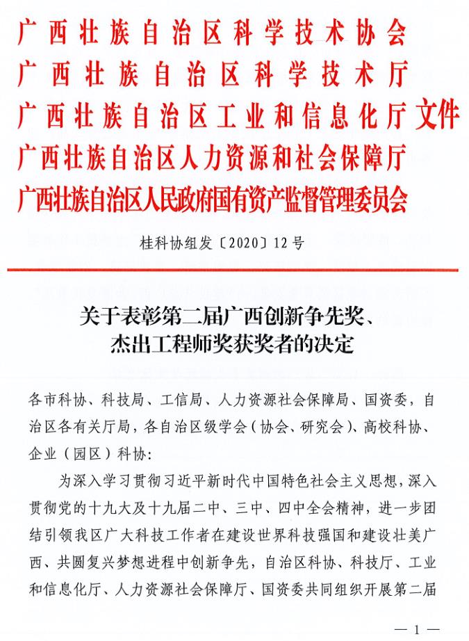 會(huì)保障廳、國資委聯(lián)合印發(fā)了《關(guān)于表彰第二屆廣西創(chuàng)新爭(zhēng)先獎(jiǎng)、杰出工程師