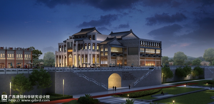 廣西民族劇院是自治區重點項目,是我院與廣西建工集團第一建筑工程有限責任公司聯合體經過公開投標競爭中標的大型文化建筑項目,是目前廣西唯一的戲劇專業劇場。項目位于南寧市亭子文化街內,總建筑面積約18800平方米,地下1層、地上3層,包括1000座中型甲等劇場、400座非物質文化遺產體驗廳以及相關的配套演出、服務功能,采用全鋼結構形式設計建造。目前鋼結構主體已封頂。
