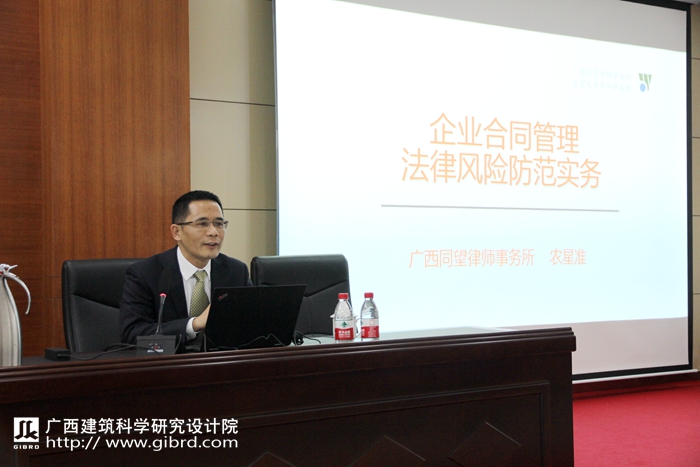 2019年3月7日,我院邀請到廣西同望律師事務所工程法律事務部主任農星準律師到我院為員工舉行了企業合同管理法律風險防范實務講座。