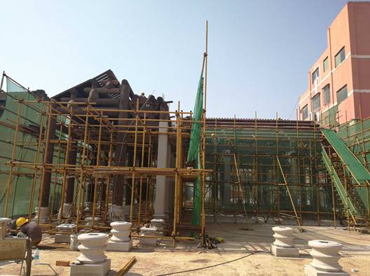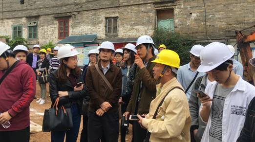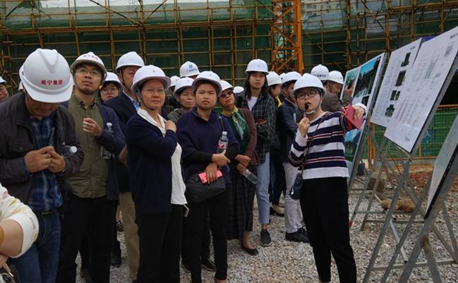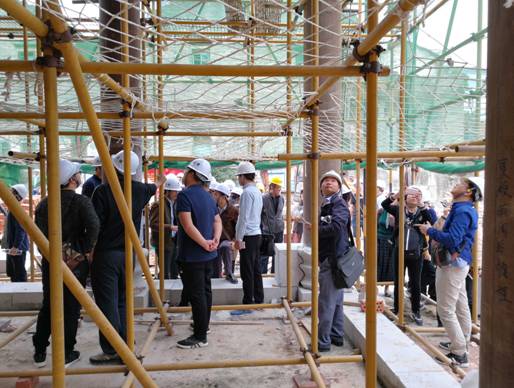 觀摩會上,廣西工程勘察設(shè)計大師、教授級高工李杰成副院長首先向參會的人員簡要介紹了南寧城隍廟新建裝配式項(xiàng)目的背景、設(shè)計及施工情況;項(xiàng)目主要設(shè)計師鄧蘭娟詳細(xì)介紹了設(shè)計木石結(jié)構(gòu)構(gòu)件裝配式設(shè)計、各構(gòu)件的榫卯連接設(shè)計、構(gòu)件的預(yù)制加工和組裝方式的設(shè)計技術(shù)要點(diǎn);現(xiàn)場施工項(xiàng)目經(jīng)理黃克強(qiáng)簡要介紹了項(xiàng)目現(xiàn)場裝配施工的情況,并帶領(lǐng)眾人進(jìn)入工地,對裝配式施工情況進(jìn)行具體介紹。