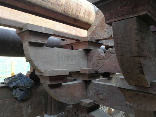 專家們參觀已經(jīng)吊裝完成的寢殿