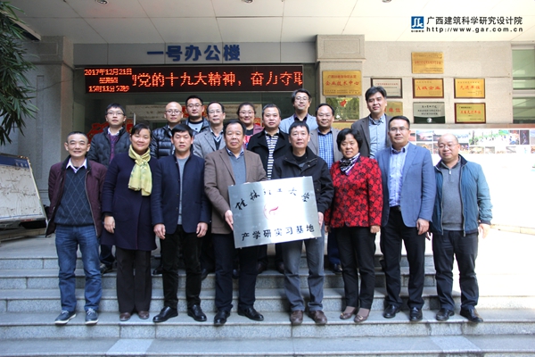 2017年12月21日下午, 我院與桂林理工大學產(chǎn)學研實習基地揭牌儀式暨座談會在我院舉行。桂林理工大學梁福沛副校長,我院黃晨院長、俸尚東書記參加座談會和揭牌儀式。 會上黃晨院長介紹了廣西建筑科學研究設計院的發(fā)展歷史和主營業(yè)務情況,表示此次與桂林理工大學簽訂產(chǎn)學研合作,是一個機遇,雙方要優(yōu)勢互補,不斷拓展合作領(lǐng)域,建立實質(zhì)性的產(chǎn)學研合作。桂林理工大學梁福沛副校長簡要介紹了該校校外實習基地建設概況,強調(diào)了在創(chuàng)新創(chuàng)業(yè)、實習實踐能力培養(yǎng)背景下實習基地建設的重要性,并希望與我院在人才培養(yǎng)、科研攻關(guān)、工程實踐等方面實現(xiàn)更全面、更深入的交流合作。 我院林宗定副院長、顧濤副院長、朱惠英副院長、龐耀國副院長、李杰成副總工程師、辦公室樊振北主任,桂林理工大學教務處、土木與建筑工程學院的有關(guān)領(lǐng)導、教師參加此次活動。
