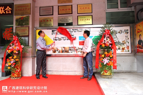 活動分為三個部分,首先進行揭牌儀式,由廣西藝術學院陳應鑫副院長和廣西建科院黃晨院長揭牌。儀式后在黃晨院長的帶領下,廣西藝術學院代表團參觀了我院的辦公環境。最后進行座談,就研究生聯合培養教學模式展開討論。