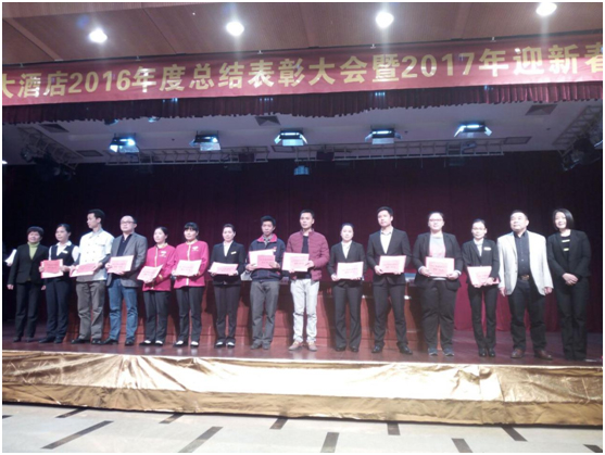 2017年1月23日下午,院屬建設五象大酒店在建設大廈四樓萬象多功能廳舉辦2016年度總結表彰大會暨2017年迎新春游園活動,全酒店90多名在職員工參加了活動。住建廳機關服務中心副主任肖輝利受邀參加本次活動。 總結表彰大會由酒店副總經理、工會主席黃艷梅主持。我院副院長、酒店執行董事、法人代表龐耀國就酒店2016年度工作作了總結,同時對2017年工作作了規劃和部署。隨后,酒店領導向榮獲2016年度2個先進集體、3名優秀部門經理、2名優秀部門主管、13名優秀員工頒發了獎狀、獎金。