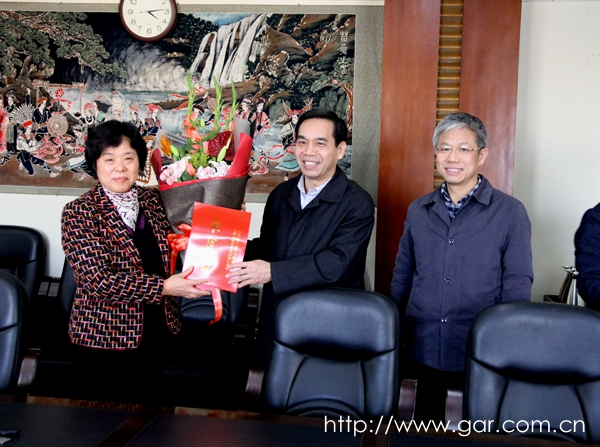 2017年1月22日下午,自治區政協黃道偉副主席到我院看望慰問科技人才朱惠英副院長,代表自治區黨委、政府向朱惠英致以誠摯的問候和新春的祝福,并通過院領導傳達對我院全院體職工的新春問候,黃道偉副主席還與我院領導就建筑設計領域如何結合實際突出“美麗南方”主題,切實做好具有廣西民族特色的民俗村落相關項目等內容進行了座談。自治區科技廳副廳長劉建宏、自治區住建廳總工程師楊棟陪同看望和座談,我院黃晨院長、俸尚東書記,林宗定副院長、梁潔宣副書記、龐耀國副院長、張桂珍總會計師等在家院領導參加座談。