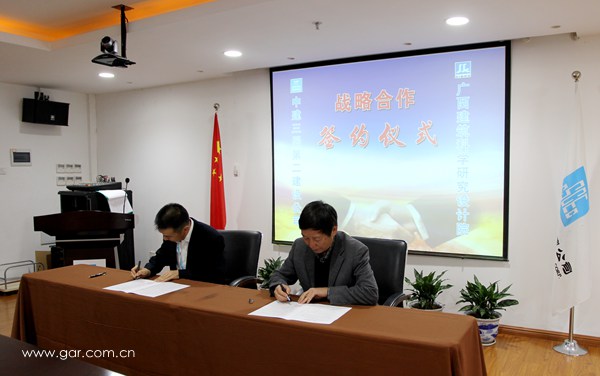 2016年12月5日下午,廣西壯族自治區(qū)建筑科學(xué)研究設(shè)計院與中建三局第二建設(shè)工程有限責(zé)任公司簽署戰(zhàn)略合作協(xié)議。我院黃晨院長與中建三局二公司(西部)肖禮鵬總經(jīng)理代表雙方簽約。