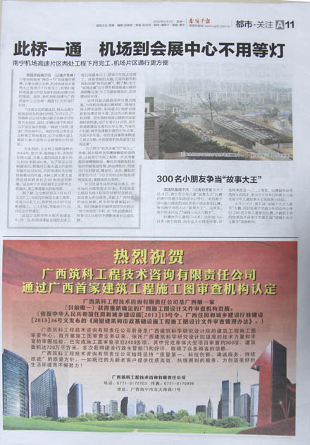 廣西筑科工程技術(shù)咨詢有限責(zé)任公司是廣西第一家獲得重新確定的廣西施工圖設(shè)計(jì)文件審查機(jī)構(gòu)資質(zhì)。(依據(jù)中華人民共和國住房和城鄉(xiāng)建設(shè)部[2013]13號(hào)令、廣西住房和城鄉(xiāng)建設(shè)廳桂建設(shè)[2013]36號(hào)文發(fā)布的《房屋建筑和市政基礎(chǔ)設(shè)施工程施工圖設(shè)計(jì)文件審查管理辦法》。)