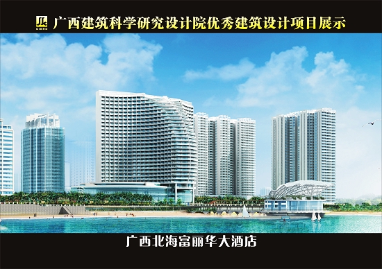 北海富麗華大酒店位于北海市茶亭路北側,屬于白金五星級酒店,項目總建筑面積為121924.1m2,地上27層,地下2層,建筑總高度為98.1m。該項目建筑工程等級為特級,耐火等級為一級,結構類型為框架剪力墻結構,設計使用年限為50年。該項目地下層為車庫、酒店辦公區、員工餐廳、洗衣房、水泵房、空調機房、變配電房等配套用房。一至三層為酒店大堂、餐飲區、會議區、休閑娛樂區等功能用房。四至二十七層為客房層,共有客房580間。酒店主體平面呈“人”字形布局,面朝大海,緊鄰沙灘。酒店的所有客房均面向海景,沿海岸線于建筑上部逐層后退,使整個建筑擁有流暢的立面弧線。