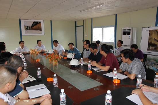 2011年9月8日,中秋前夕廣西住建廳嚴世明廳長及設計處處長楊棟、規劃處副處長梁立新等來到位于五象新區的“廣西城市規劃建設展示館”工地,慰問廣大職工并指導工作。在工地現場,廣西城投公司董事長龐文達向嚴廳長詳細匯報了項目的進展情況,嚴廳長針對項目的進展情況作出了相應的工作指示和建議。嚴廳長充分肯定了項目建設進展,要求進一步加快建設進度,向自治區第十次黨代會獻禮。在隨后的項目進展匯報會上,我院監理公司總經理陳群毓向嚴廳長和龐董事長匯報了該工程的監理情況,最后嚴廳長祝大家中秋節日快樂。