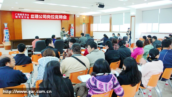 為加強(qiáng)管理,調(diào)動(dòng)員工工作積極性,發(fā)掘和培養(yǎng)企業(yè)內(nèi)部優(yōu)秀管理人才,進(jìn)而建立有效的激勵(lì)與競爭機(jī)制,院監(jiān)理公司于2011年3月26日舉辦崗位競聘會(huì)。會(huì)議由監(jiān)理公司陳群毓總經(jīng)理主持,院辦公室樊振北副主任、院企劃咨詢中心龐耀國主任、監(jiān)理公司副經(jīng)理等6名資深專業(yè)專家組成評(píng)委小組,監(jiān)理公司領(lǐng)導(dǎo)、各監(jiān)理部總監(jiān)以及員工等50余人參加了此次競聘大會(huì)。參加競聘的同志分別從自己對(duì)擬聘崗位的認(rèn)識(shí)、近年來工作業(yè)績、競聘該職位的主要優(yōu)勢和上任后的工作設(shè)想等幾個(gè)方面進(jìn)行了精彩的競聘演講和現(xiàn)場答辯。競聘演講結(jié)束后,專業(yè)評(píng)審小組評(píng)委對(duì)每一位競聘者現(xiàn)場打分,并進(jìn)行民主測評(píng)。