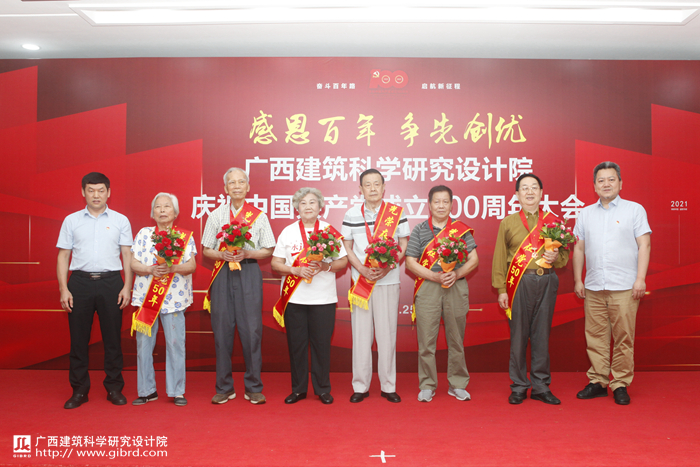 院黨委書記俸尚東、院長梁浩文為“光榮在黨50年”紀(jì)念章獲得者頒獎(jiǎng)