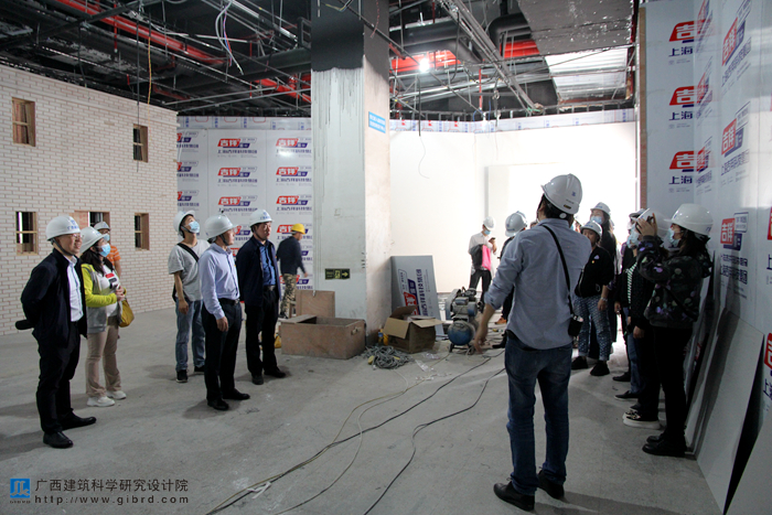 活動中,廣西黨史陳列館功能提升改造項目總負責人、檢測六所所長段志浩,就該項目建設的重難點、技術突破、施工作業等方面進行詳細的介紹,從段所長的介紹中了解到,該項目建設最難最關鍵部分就是地下消防工程建設,該部分采用了不需要獨立工期的混凝土結構自防水工藝,通過我院全體技術人員群策群力、集思廣益、通力合作,在地下室墊層澆筑以后,僅用了4天時間,完成了整個地下室的施工至頂板面的澆筑,創造了廣西奇跡。在段所長的介紹和引導下,黨員們還參觀了黨史陳列館室內外施工現場。
