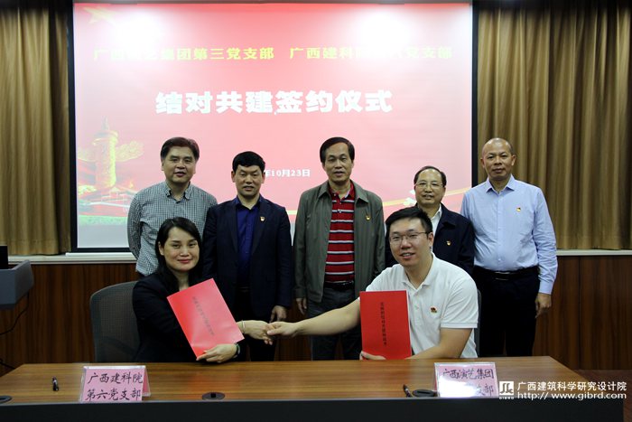 會(huì)上,俸尚東書記首先從工作開展情況、存在問題及下一步工作思路介紹了我院近年來的黨建工作情況,并對(duì)即將開展的結(jié)對(duì)共建寄予美好祝愿。接著,與會(huì)人員共同觀看了兩家單位的視頻介紹,并由即將進(jìn)行結(jié)對(duì)共建的4個(gè)支部書記通過圖文并茂的PPT介紹支部開展黨建工作情況,加深雙方的相互了解,為順利開展結(jié)對(duì)共建工作奠定堅(jiān)實(shí)基礎(chǔ)。隨后,我院第二黨支部與廣西文寶投資公司黨支部、我院第六黨支部與廣西演藝集團(tuán)第三黨支部簽署了結(jié)對(duì)共建協(xié)議,標(biāo)志著兩家單位的黨建共建正式拉開了序幕。