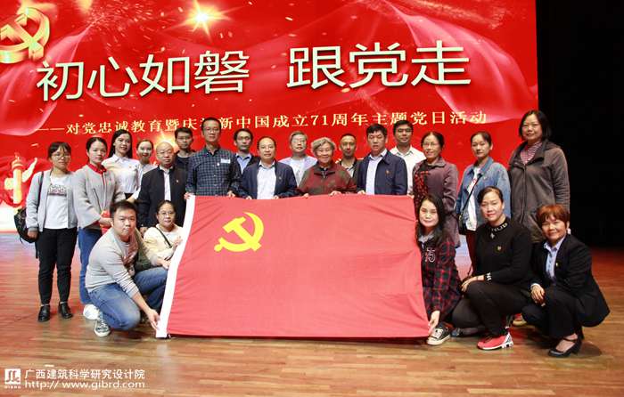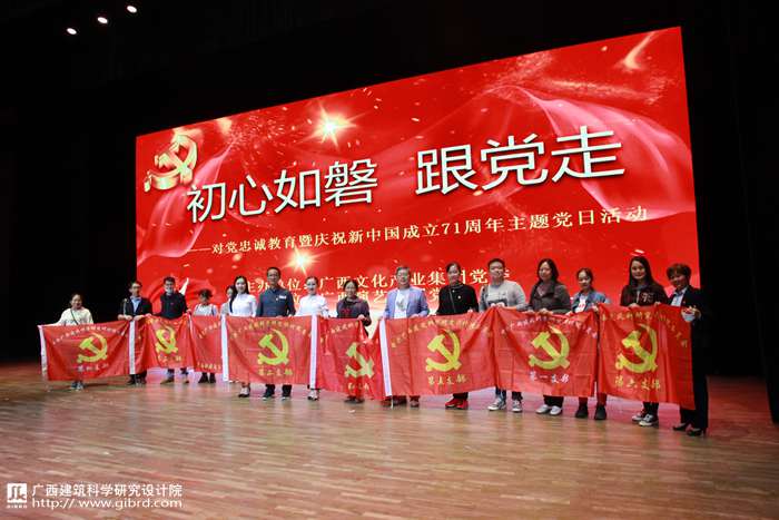 10月9日,受廣西文化產業集團邀請,院黨委書記俸尚東帶領部分黨員共計23人到南寧劇場參加該集團舉辦的“初心如磐跟黨走”對黨忠誠教育活動暨慶祝新中國成立71周年主題黨日活動,院黨委副書記何峰、紀委書記曹天仕一同前往參加活動。