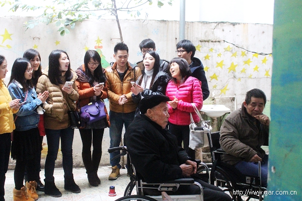 我院青年團員還老人與共同唱起大家耳熟能詳?shù)募t歌 |