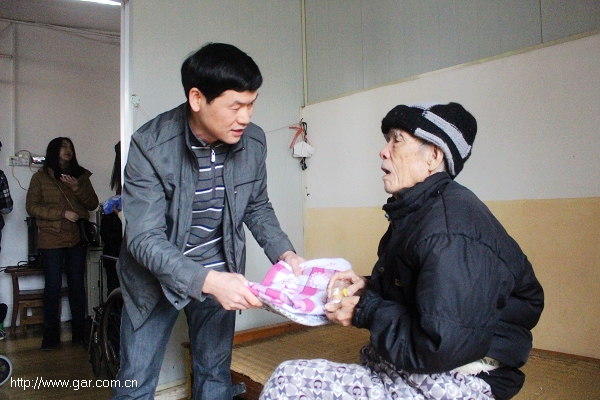 俸尚東書記、楊萍副主席和全體委員向護老院的老人贈送了枕巾和睡衣