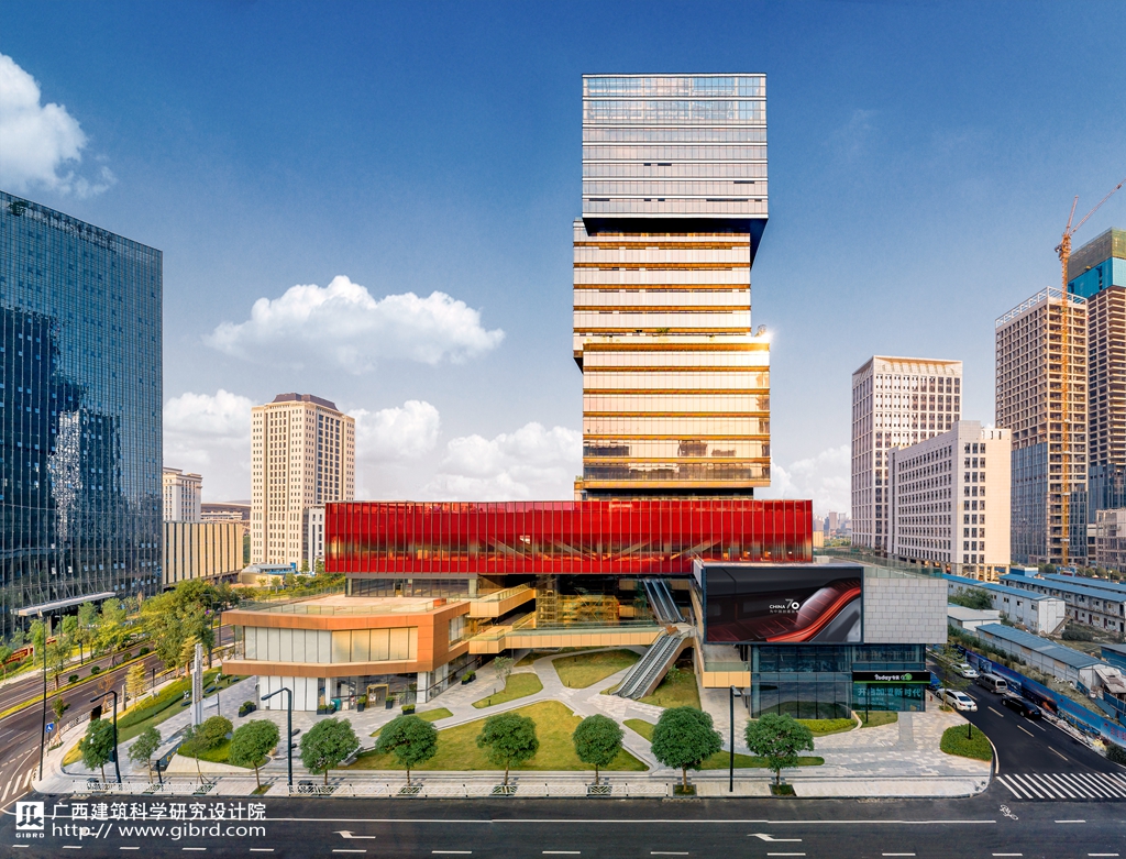 海創·夢中心項目(以下簡稱“本項目”)位于南寧市五象新區,整體地塊呈南高北低趨勢,東北角為地塊的最低處。東側、南側為相鄰待開發地塊,西側為規劃市政路歌韻路,北側為規劃市政路歌海路。項目使用性質主要包含商業、辦公等功能。項目用地面積11492.35m2,總建筑面積64691.76m2、容積率4.0、建筑密度34.99%、綠地率26.02%,建筑高度99.5m,機動車停車位470個,非機動車停車位1058個。地上23層,地下2層,本項目的結構形式為框架-核心筒,屬一類高層建筑,建筑耐火等級為一級,建筑物的抗震設防烈度為六度,建筑設計使用年限為50年。工程性質為辦公建筑。由廣西留學人才產業園投資股份有限公司開發建設,設計單位為華藍設計(集團)有限公司,綠建咨詢單位為廣西壯族自治區建筑科學研究設計院。開發與建設周期:2014年12月8日~2018年10月30日。本項目于2021年10月被評為2021年度廣西優秀工程勘察設計成果綠色建筑三等等次。