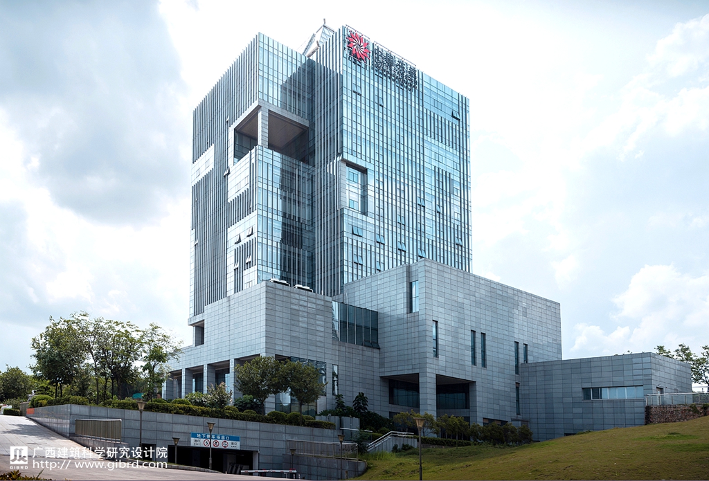建筑強調(diào)以純凈的幾何形體和豐富的建筑空間塑造優(yōu)美的建筑形象,主入口開放式門廊采用干欄式傳統(tǒng)建筑的空間組織形式,結(jié)合門廊立柱裝飾和幕墻遮陽構(gòu)件形成壯族螞拐蛙人的傳統(tǒng)文化韻味和現(xiàn)代氣息柔和,屋頂機房與散熱塔采用重檐的形式,賦予建筑極強的文化內(nèi)涵,強烈體現(xiàn)了建筑形象的地域文化和時代感,強烈宣示了建筑形象的穩(wěn)重感、份量感和莊嚴感。